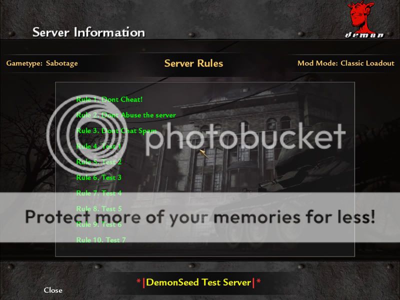 * Welcome Screen (see demon.cfg for server rules dvars)