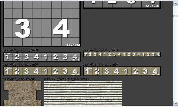 I know there are the case1024 textures and whatnot, but there are named textures I've been seeing, and as the screenshot shows, ones from dawnville. I've also been browsing through some of the models and in some instances I'll load them and the textures will be similar, colored blocks with numbers in them.