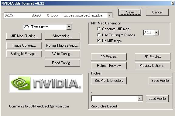 or "dds" "dxt5 with no Mip Maps"